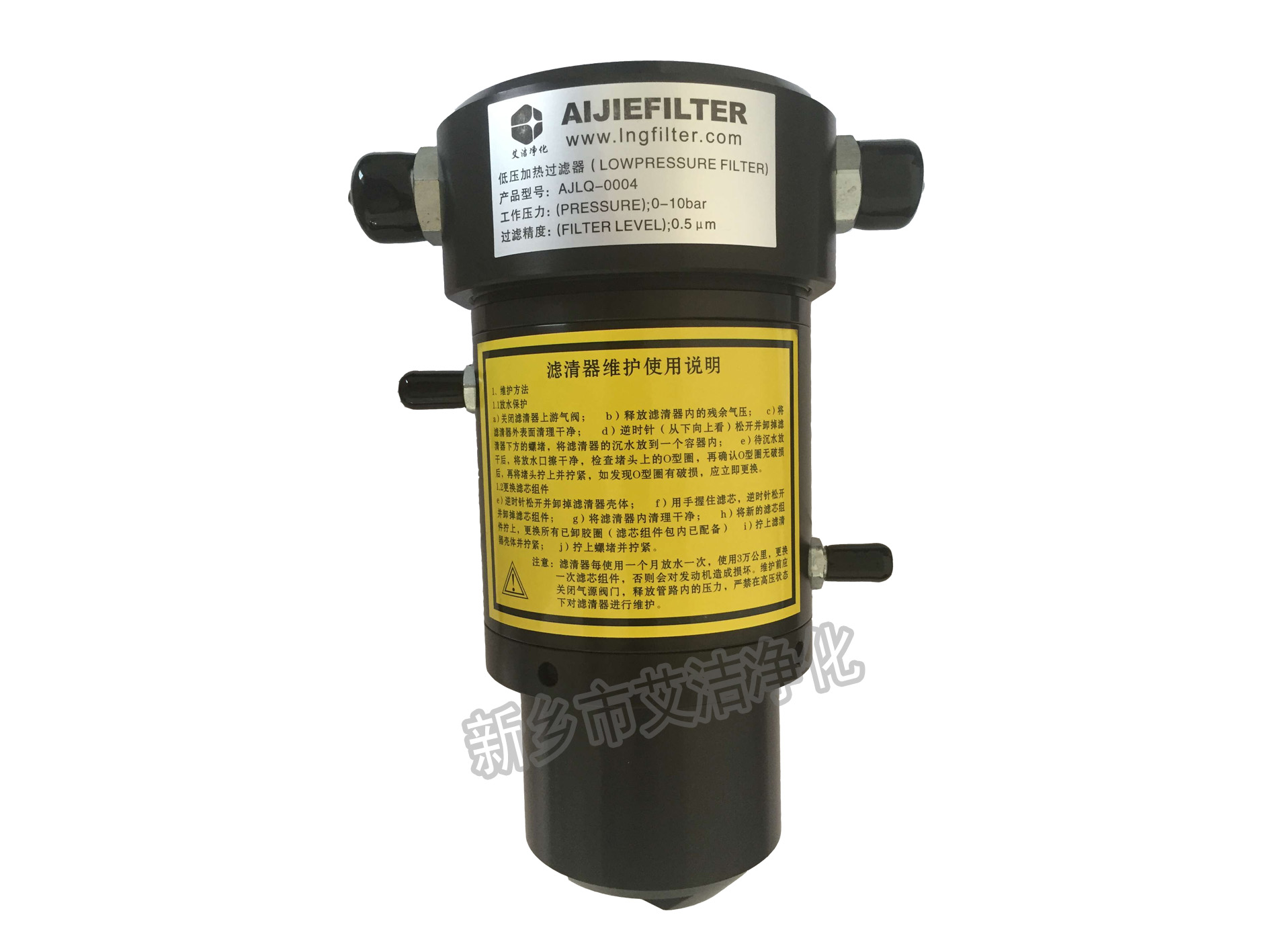 AJLQ-0004低壓天然氣濾清器是天然氣濾清器的一種,主要由一級旋風分離器、二級慣性除沫器預(yù)濾和凝聚、三級精濾芯凝聚、排污閥等組成,夾帶液體和固體顆粒的天然氣,由進氣管以切線方向進入一級旋風分離器。經(jīng)過旋風分離,較大的液滴和固體顆粒被分離出來。然后,經(jīng)過二級除沫器,氣體通過慣性碰撞作用下,氣、液、過進一步分離。氣體中顆粒較大的塵埃被濾除,對后級精濾芯起保護作用。氣體通過精濾芯(第三級精濾),粒徑大于0.3~0.6微米(或更細)的固體顆粒被濾除;并凝聚成較大的液滴,在重力作用下,沉降到精濾管底部。分離出來的液體由各排污口排出,經(jīng)處理的天然氣由過濾器頂端的出氣口輸出。